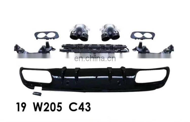 Home > Products > for MERCEDES BENZ > 2019 C Class W205 C43 Diffuser and Muffler Tips for C200 C260 C300 Coupe and Sedan Rear Diffuser and Exhaust Pipes