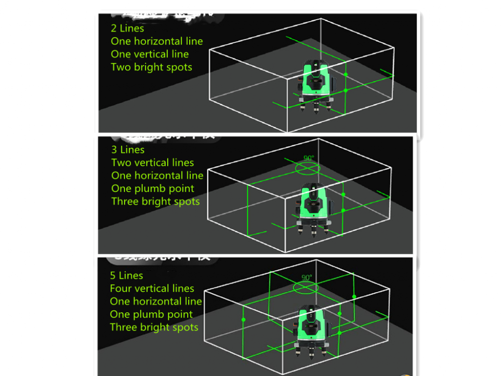 2/3/5 Lines Green Beam Laser Level Meter with Adjustable Light