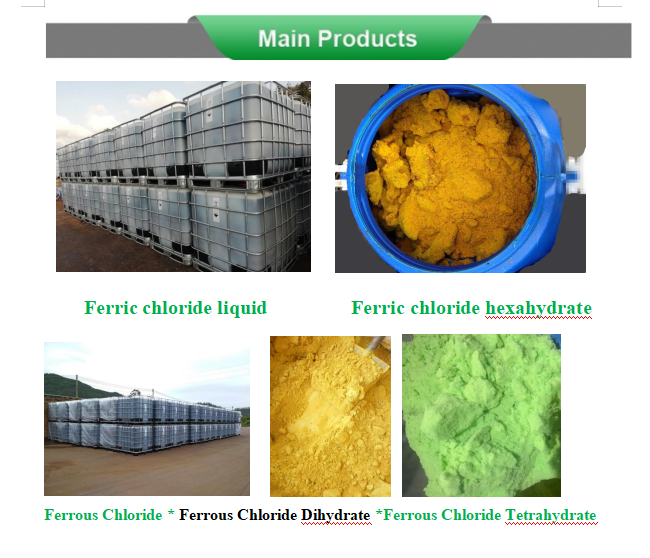 | ferric chloride | ferrous chloride | ferrous chromium chloride | anhydrous ferric phosphate |