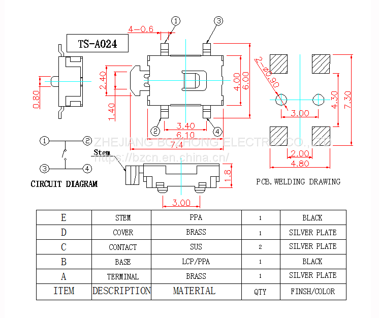 BZCN 3*4 TS-A017 Factory Direct Sale High Performance Tact SwitchesUS$ 0.05 - 0.15MOQ: 1 Set