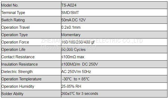 TS-A024 4*6.1 Push Button Switch SMD For Electronic Mobile Devices