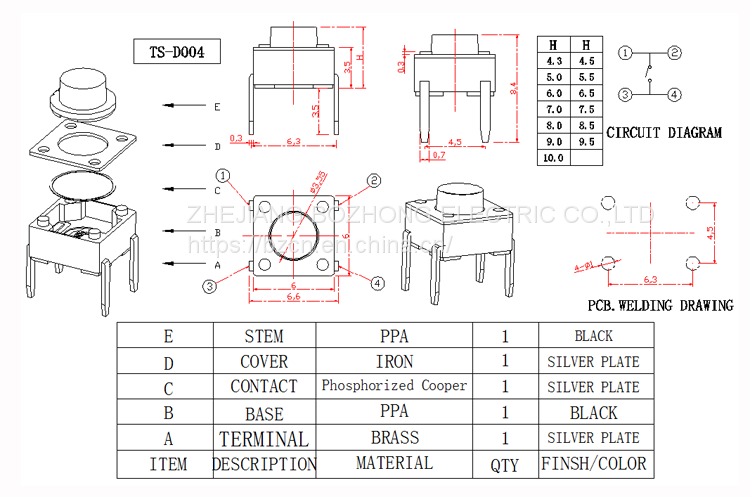 Factory Direct Sale BZCN TS-D017 Hot Sale High Quality Tact SwitchUS$ 0.05 - 0.15MOQ: 1 Set