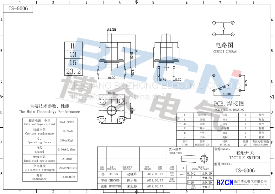 Factory Direct Sale BZCN TS-D017 Hot Sale High Quality Tact SwitchUS$ 0.05 - 0.15MOQ: 1 Set