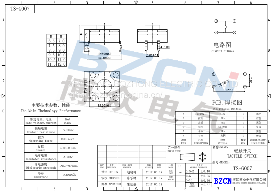 Factory Direct Sale BZCN TS-D017 Hot Sale High Quality Tact SwitchUS$ 0.05 - 0.15MOQ: 1 Set