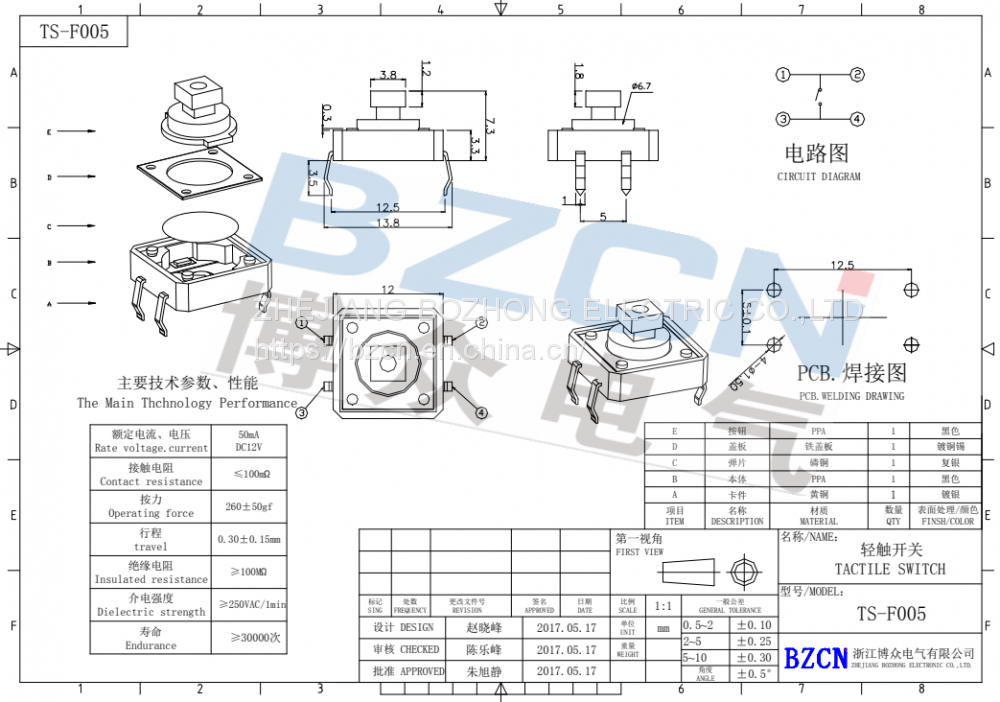 Factory Direct Sale BZCN TS-D017 Hot Sale High Quality Tact SwitchUS$ 0.05 - 0.15MOQ: 1 Set