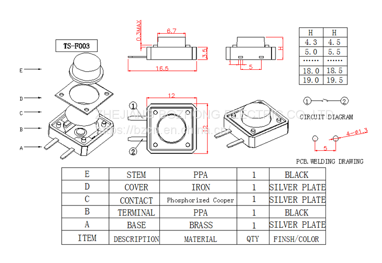 Factory Direct Sale BZCN TS-F003 Hot Sale High Quality Tact Switch