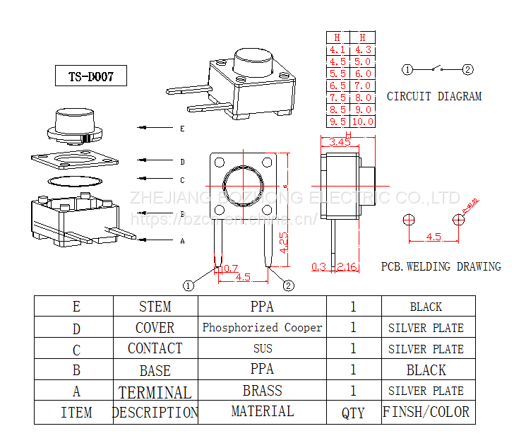 Factory Direct Sale BZCN TS-D007 Hot Sale High Quality Tact Switch