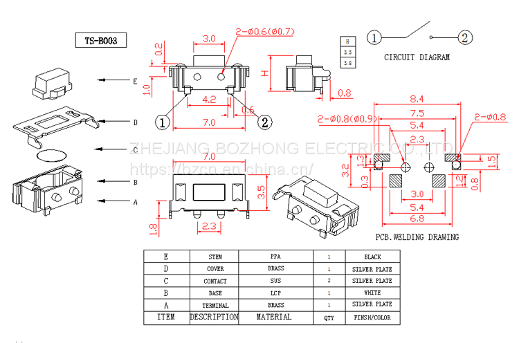 Factory Direct Sale BZCN TS-B003 Hot Sale High Quality Tact Switch