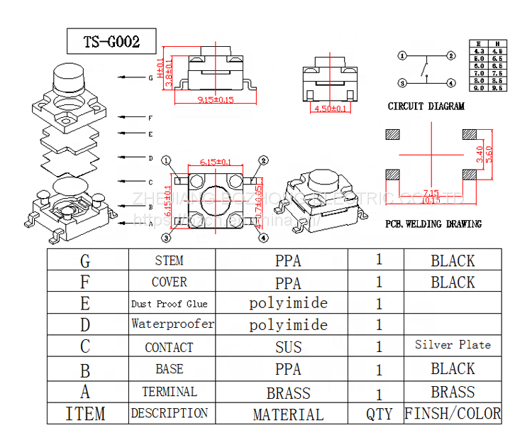 6*6mm TS-G002 Tact Switch DIP Tactile For Electronic Mobile Devices