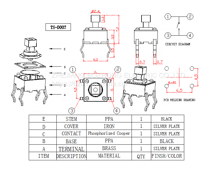 BZCN 6.2*6.2 TS-E003 Factory Direct Sale High Performance Tact SwitchesUS$ 0.05 - 0.15MOQ: 1 Set