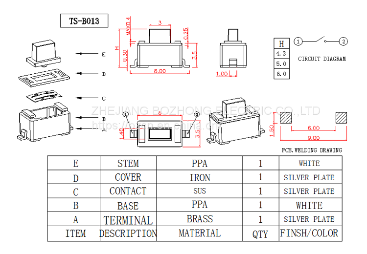 BZCN 6.2*6.2 TS-E003 Factory Direct Sale High Performance Tact SwitchesUS$ 0.05 - 0.15MOQ: 1 Set