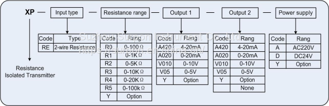 order model: XP-RE-Y-A420 -D(Y=0-560Ω)