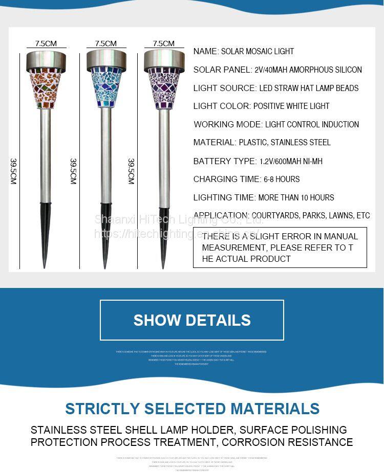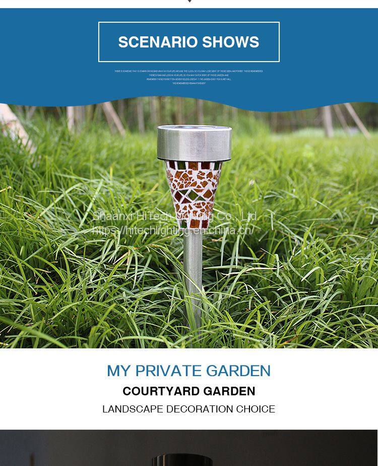 Mosaic Solar Outdoor Lawn Light Waterproof Ip55 Stainless Steel Garden Led Decoration Light for Landscape Yard Pathway