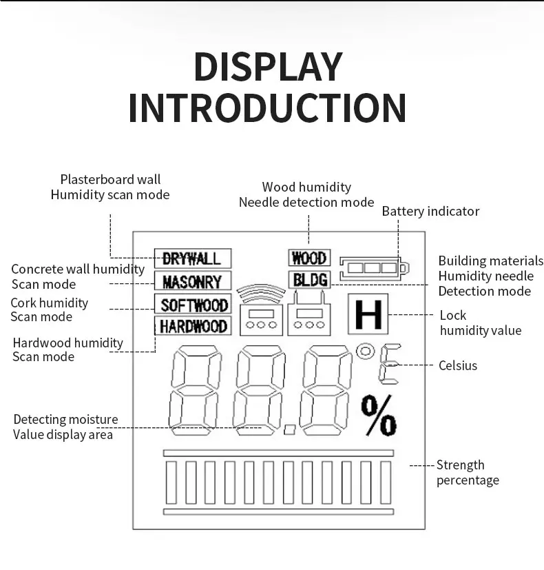 1. It can be used to determine the moisture content of various kingds of tree species,wood,bambll ware,paper,Chiness medicinal materials, plasterboard, cement mortar and lime mortar.