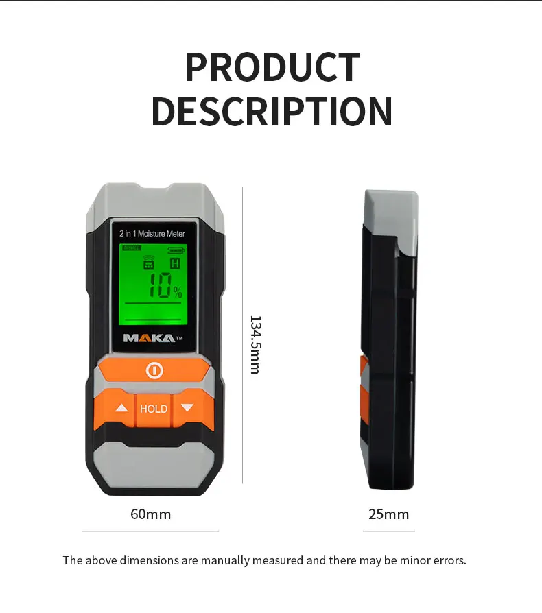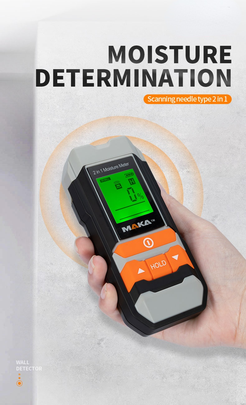 2.The latest scanning method for determining the moisture content of wood without damaging the surface of the object can distinguish between wet and dry contrast of masonry wall or gypsum board.