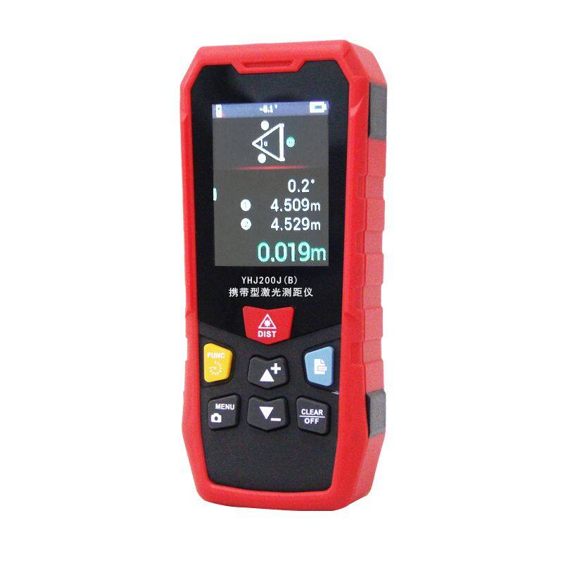 YHJ-200J(B) portable laser distance meter adopts special chip and photoelectric integrated intelligent design. It is a high-precision multi-function distance measuring instrument, which can directly or indirectly measure distance, area and volume. It has the features of accurate measurement and convenient use.