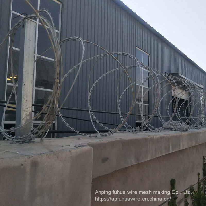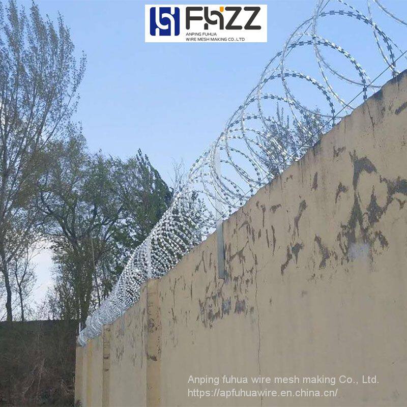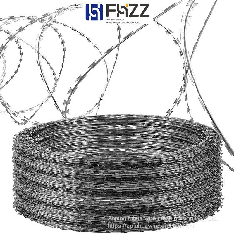 Galvanized Razor Wire Concertina Coil Size BTO-30 Razor Barbed Wire Combat Wire Round