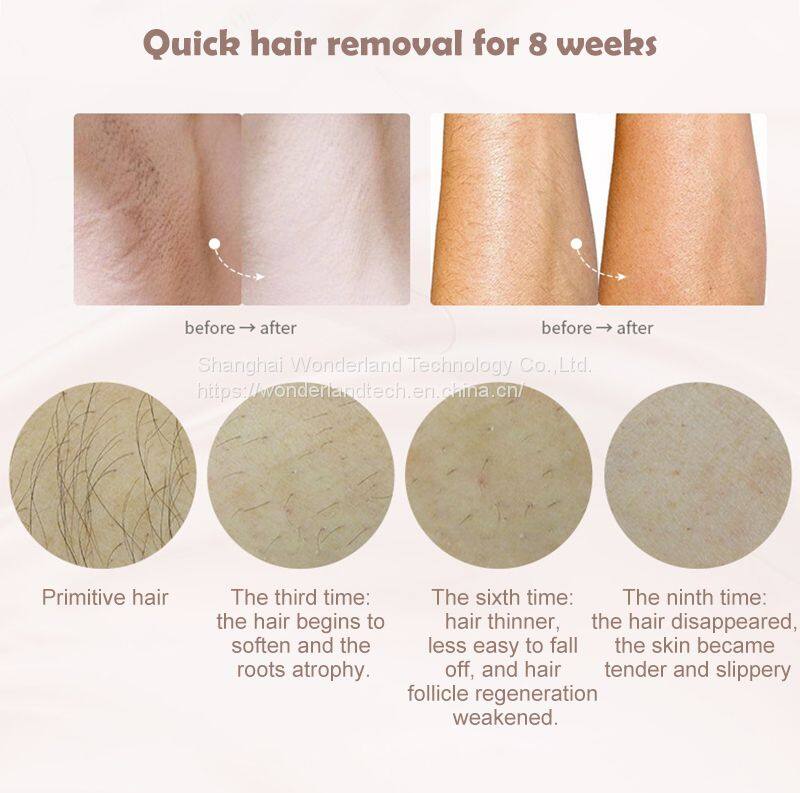 Professional intense pulsed light technology ,providing effecient and gentle inrradiation experience . The precise targeting of melanin in hair follicles inhibits hair growth in different parts of the human body . Farewell to repeated depilation!