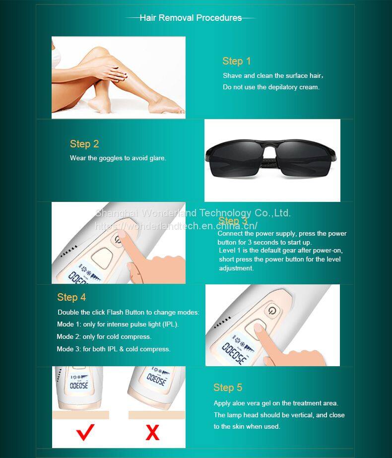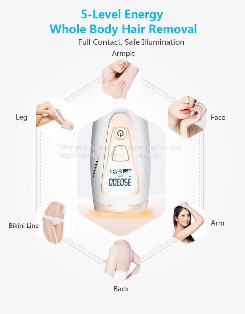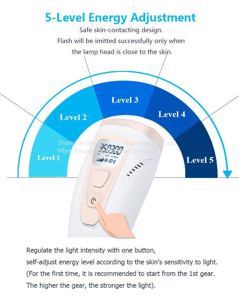 3. 5-Level Energy agjustment , Safe skin contacting design ,Flash will be imitted successfully only when the lamp head close to the skin .