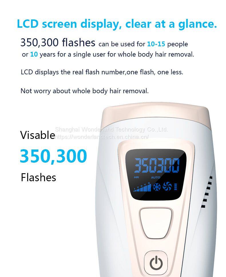 4. LCD Screen display ,clear at a glance . 350300 flashes can be used for 10-15 people or 10 years for a single user for whole body hair rmeoval .