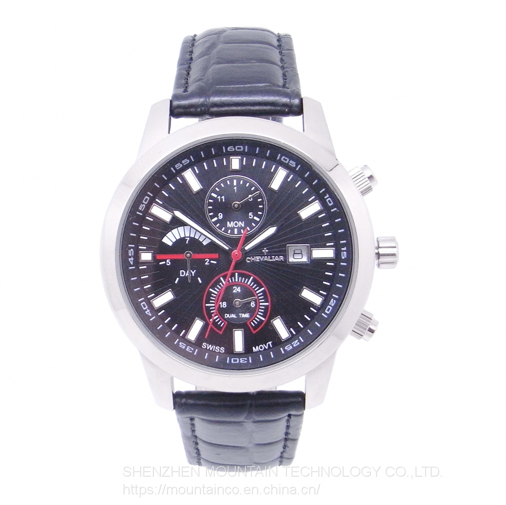 Stainless Steel Case Multi-function Watches Man Genuine Leather Dual Time Quartz WatchUS$ 18.00 - 23.00MOQ: 300 Pieces