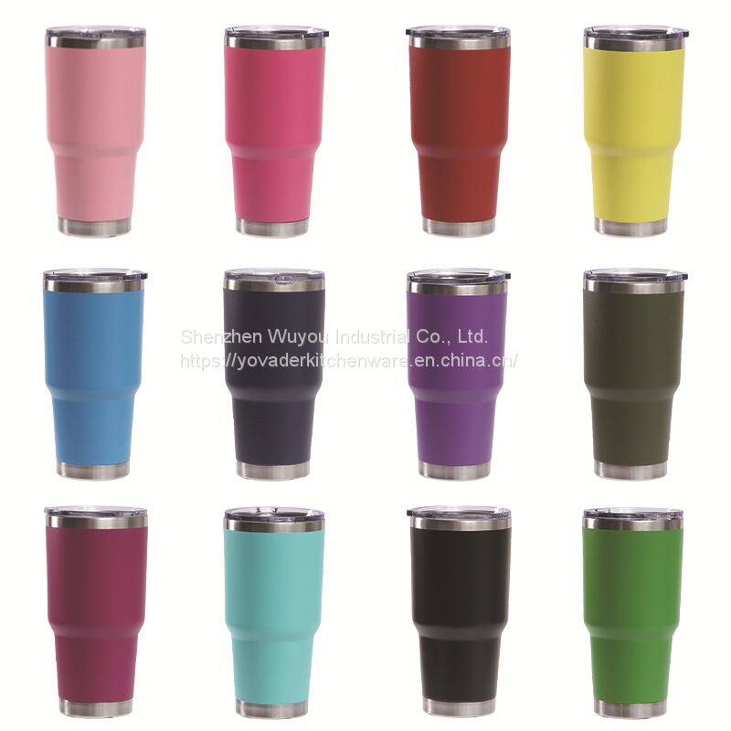 30oz coffee tumbler, also named travel mug or thermos cup, the cup body manufacture with high quality anti-rust 304 stainless steel, and the lid produce with BPA free plastic slider lid. The travel mug are with double wall insulated vacuum design, will not leak with shaking. It has good performance of retain temperature, can stay hot drink more than 6 hours and cool beverage more than 12 hours.
