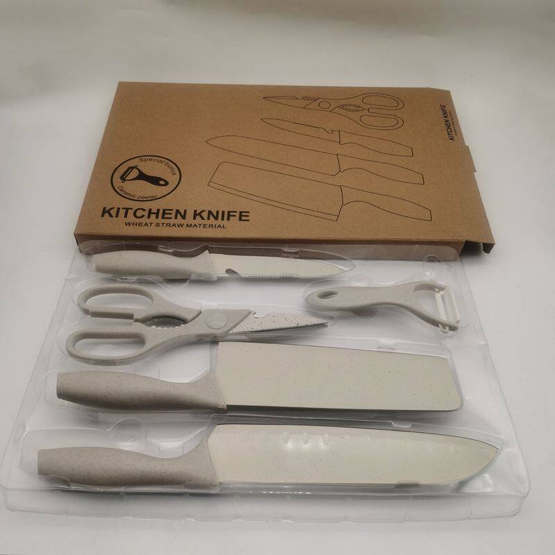 5 Pcs Cream Wheat Straw Kitchen Knife Set With Box Package