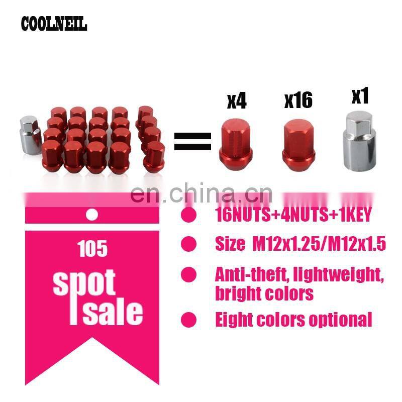Color Red 20Pcs Nuts+1Pcs Key Car Tire Modified Automotive Wheel Nut