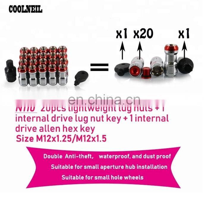 -Includes: 20pcs lightweight lug nuts with 1 internal drive lug nut key and 1 internal drive allen hex key