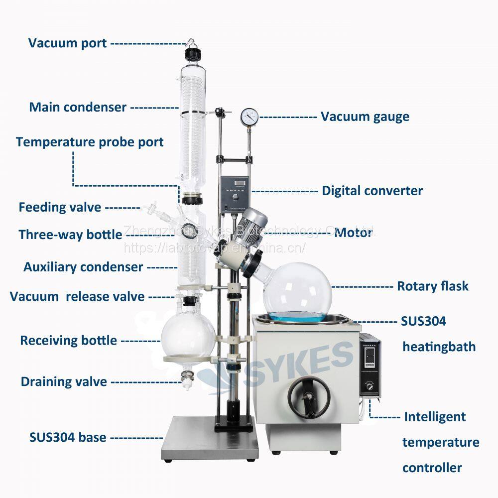 2. An ( explosion-proof ) rotary evaporator ( also be called rotary vacuum evaporator or Rotary Devaporizer or rotovap or rotavapor or rotavap ) can be used with recirculating water vacuum pump and low temperature cooling liquid circulating pump/ recirculating chiller to form the total system.