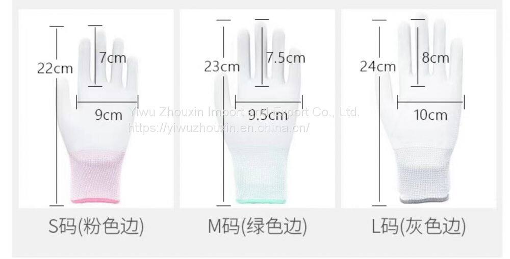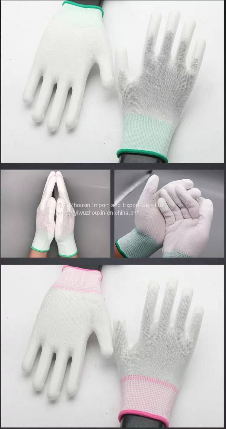 PU Palm Gloves Are White and Dust-free, and PU Finger Gloves Are Coated With Antistatic Coating in Electronic Factories