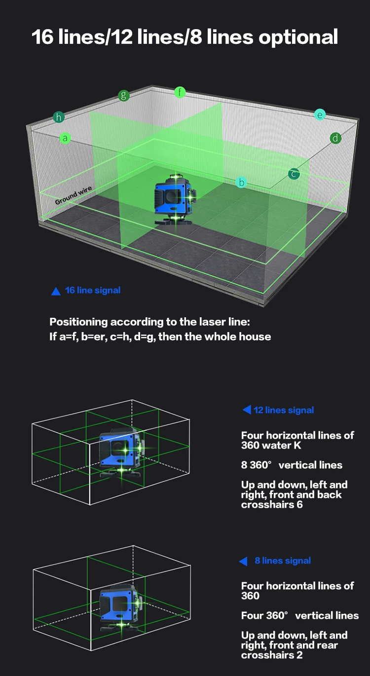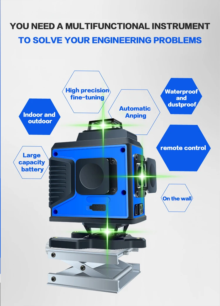 Waterproof 16 Line Laser Level Measuring Instrument With Remote Control for Home