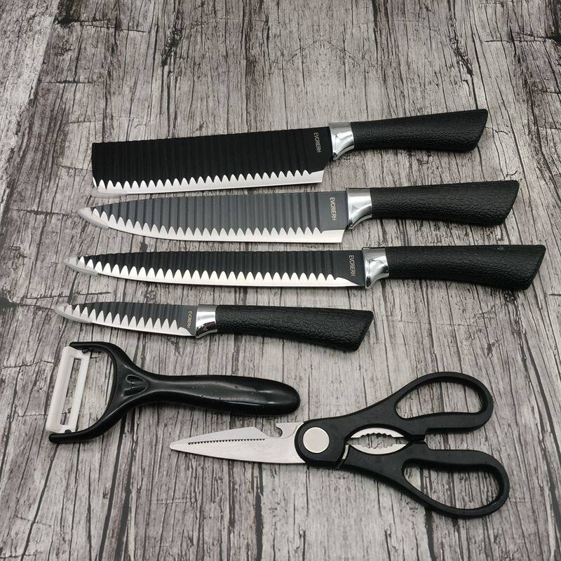 6pcs Wave Shaped Non Stick Black Color Kitchen Knife Set,6 Pieces Wave Pattern Non Stick Cooking Knife Set,China 6pcs Wave Shaped Stainless Steel Sharp Kitchen Knife