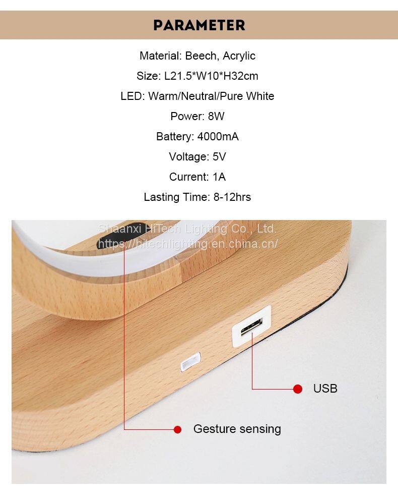 1, Convenient Gesture Sensing Control: - Light on/off - 3 colors Dimming( Warm/Neutral/Cold White) - Adjust/Fixed Brightness 2, Phone Charging, USB port, with 4000mAh battery 3, Table Lamp Rechargable