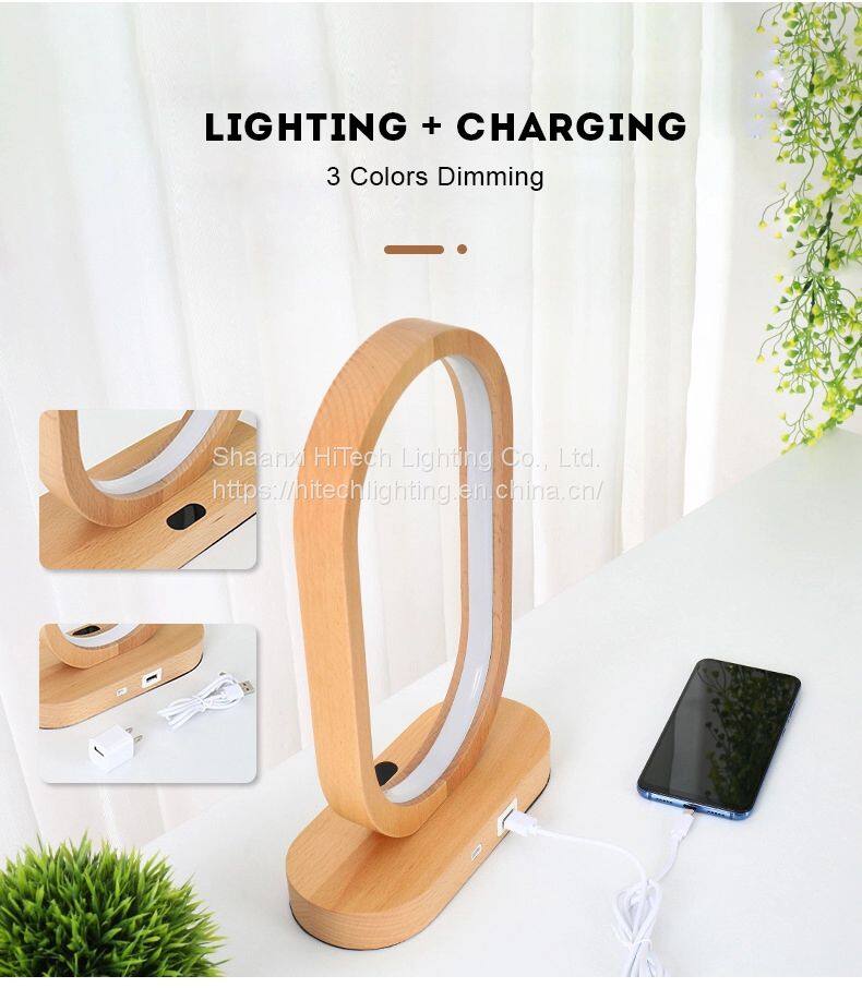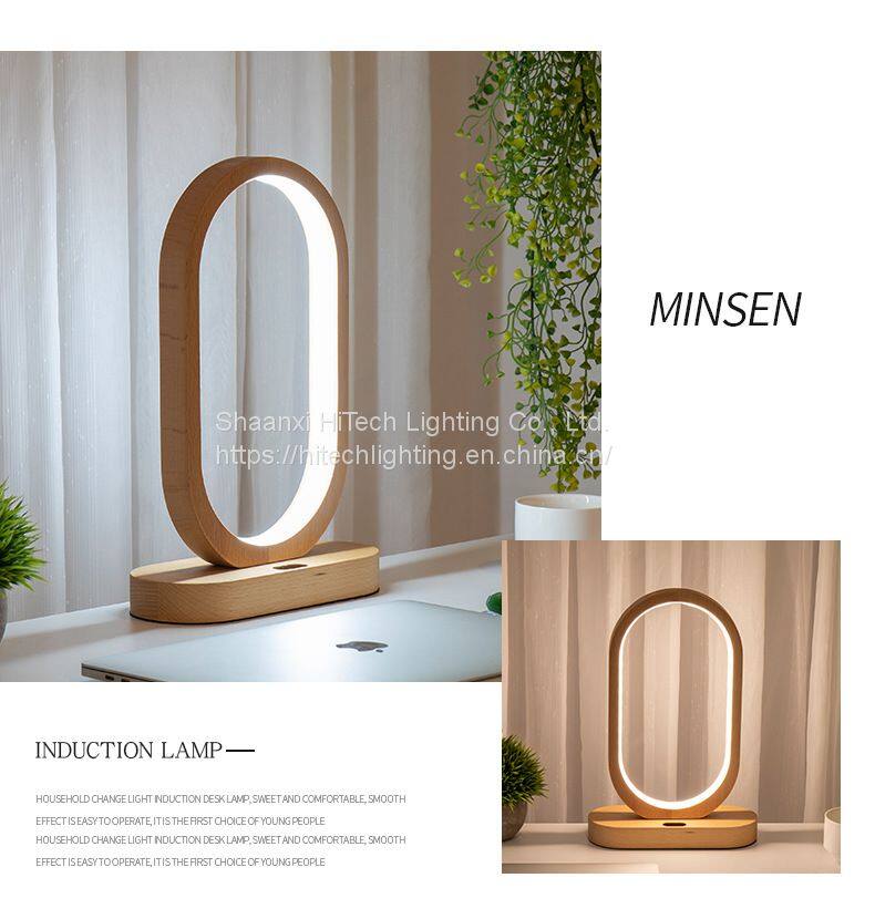 Modern Smart Sensing LED Table Lamp Wood Charging Battery USB Wood LED Desk Lamp for Study Bedroom Bedside Reading Night Lamp