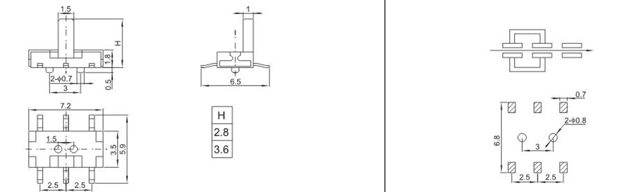 6pin 2 Position Slide Switch Push Botton Switch LY-SS08 12V 30MA Microswitch
