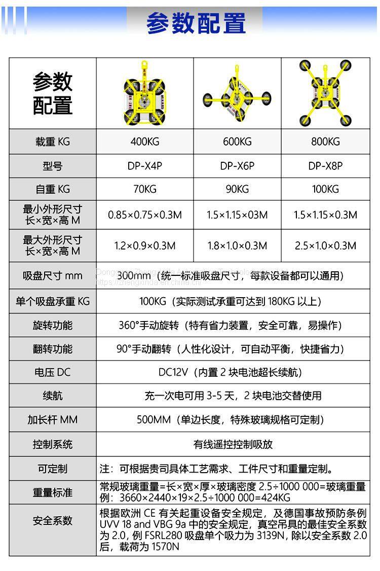 ● the removable combination of suction cup and joint handle can meet the suction and hoisting of glass of different specifications from tens of kilograms to thousands of kilograms.