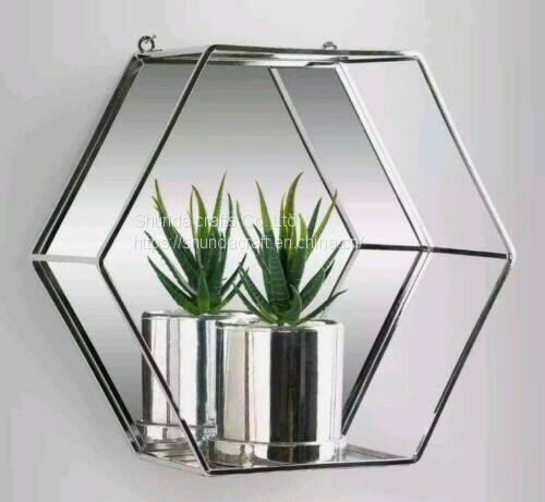 Wall Mounted Hexagon Mirror With Customized Color Wooden Frame Hanging Storage Display Makeup Mirror Shelf Wall DecorNegotiableMOQ: 1