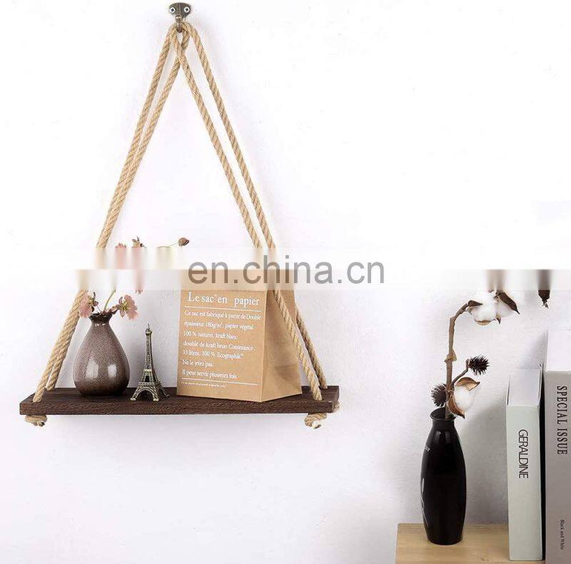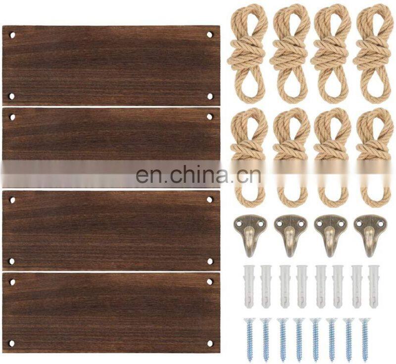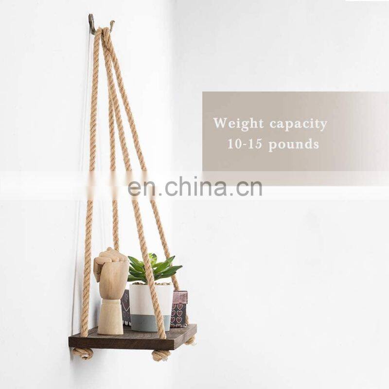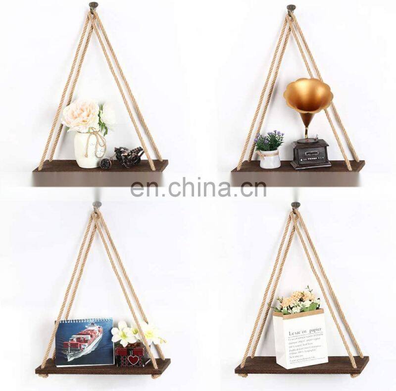 Set of 4 Rustic Triangle Hanging Swing Rope Wood Floating Wall Shelves Wooden Wall Shelf
