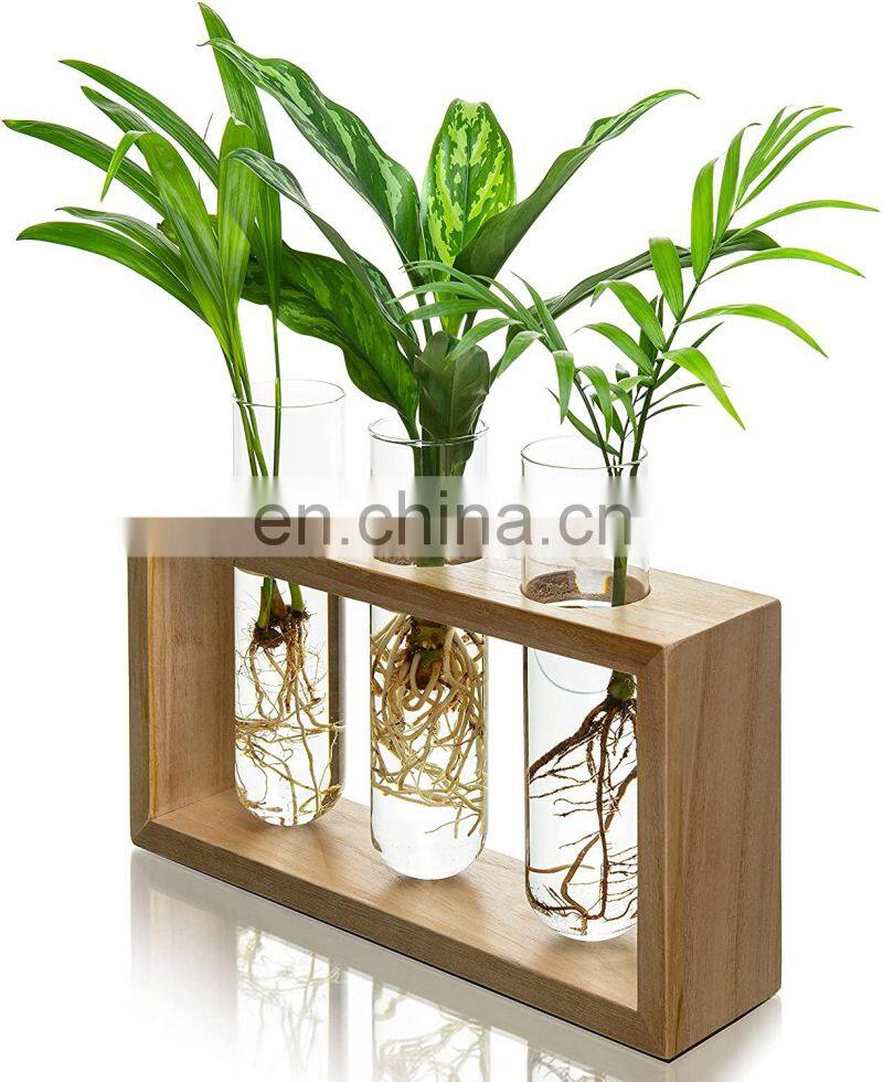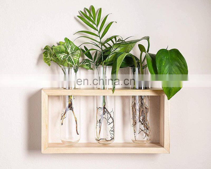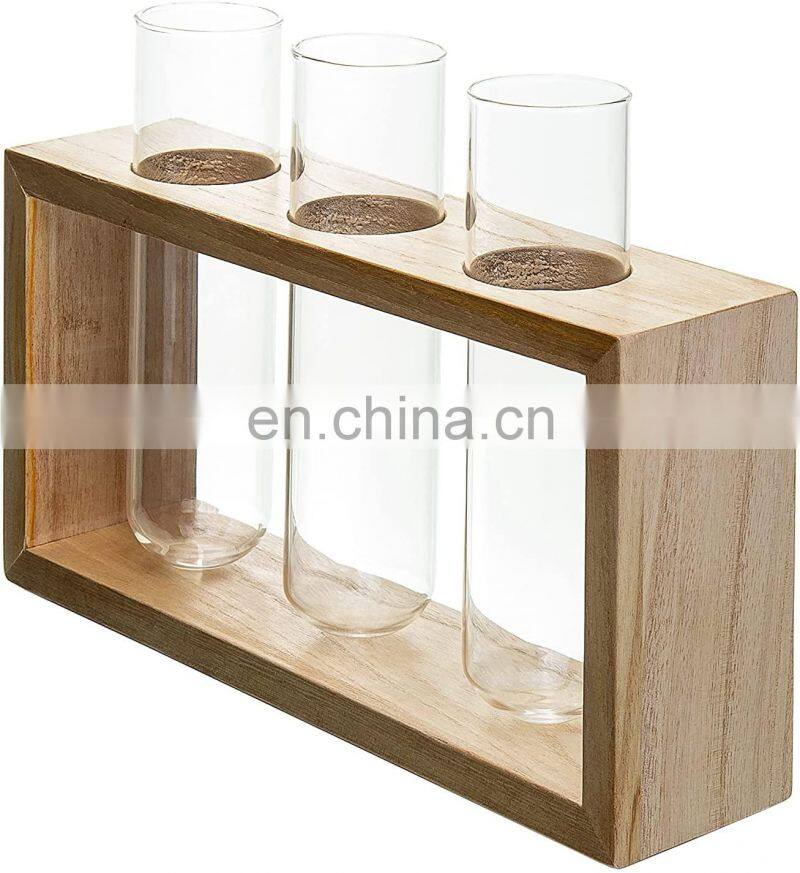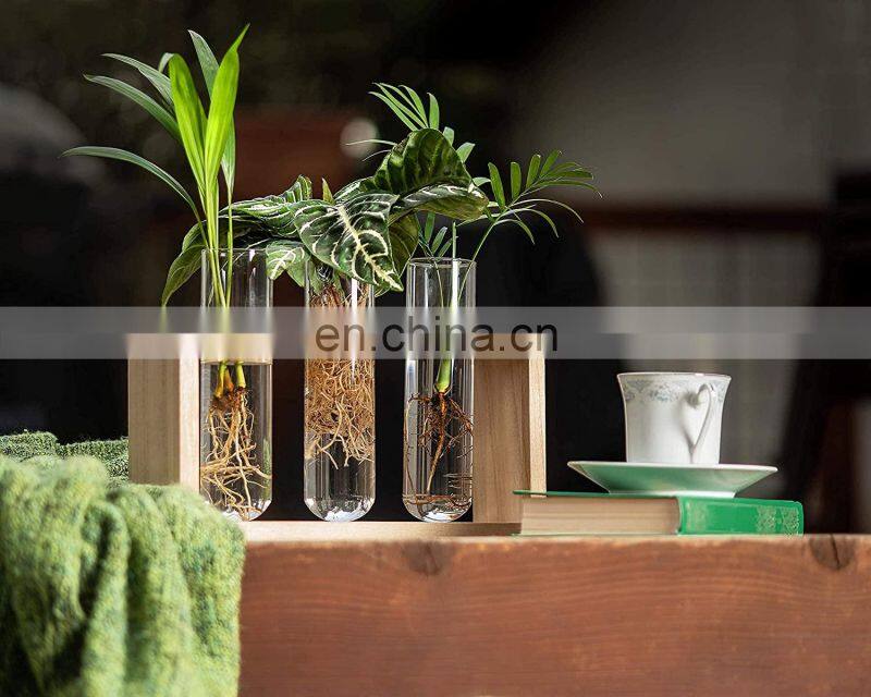 3 Test Flower Bud Vase Kit Glass Plant Terrarium Tubes Test Tube With Wooden Shelf