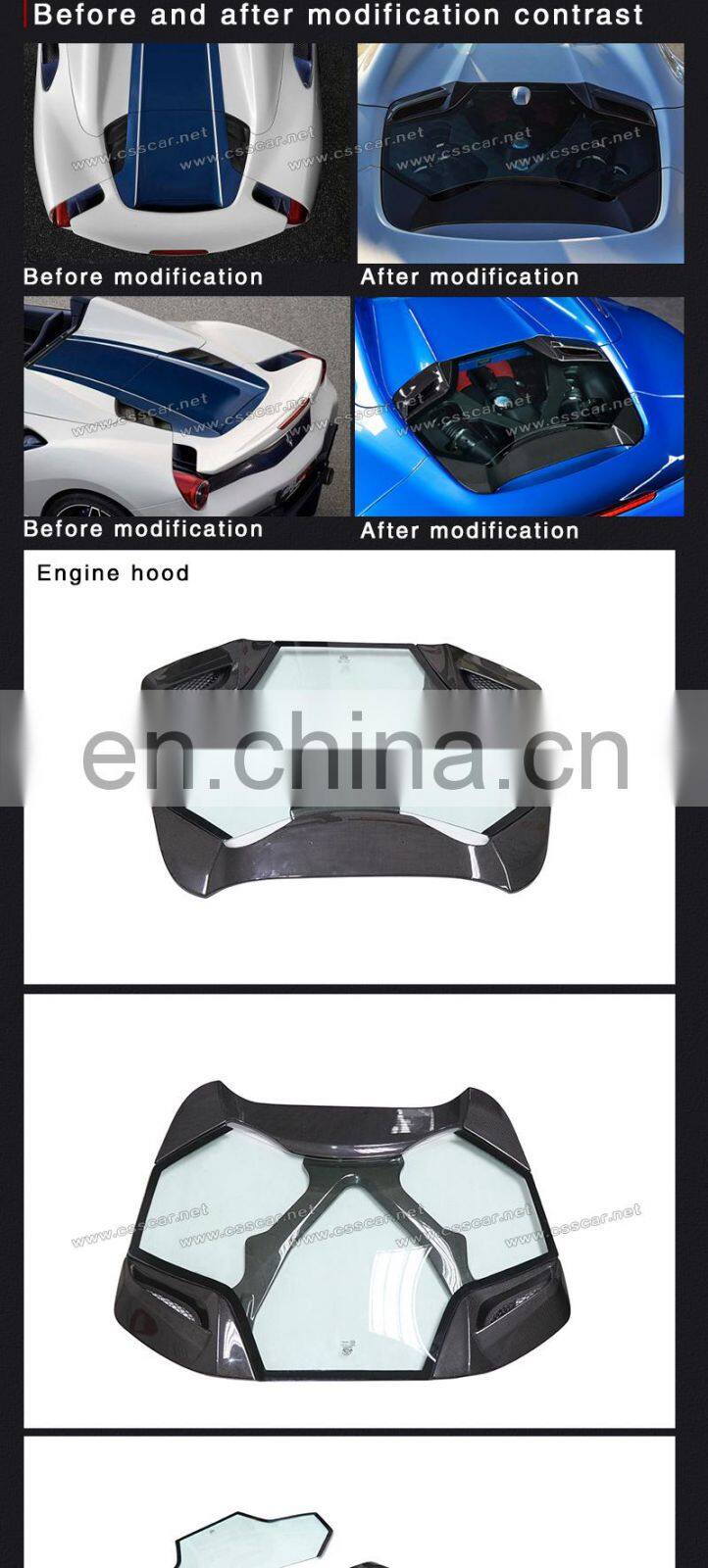 Carbon Fiber FRP Car Engine Hood Covers MISA Style Fits For Fer-rari 488 GTB Modification Auto Parts Engine Hood