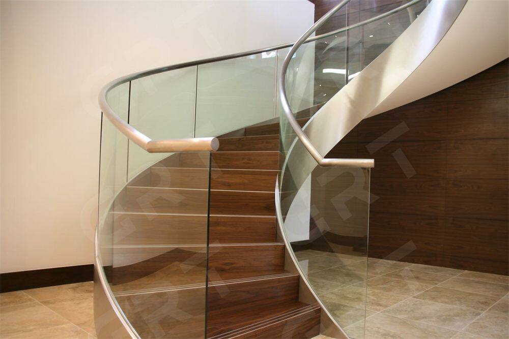 Building Code Tempered Glass Railing Modern Curved Stairs Steel Staircase