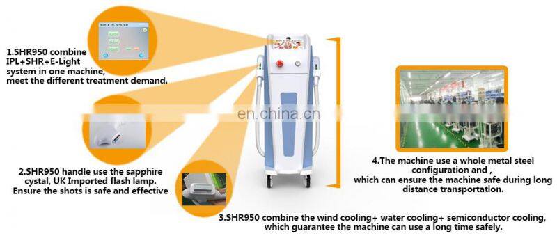 1. SHR950 combine IPL+SHR+E-Light system in one machine, meet the different treatment demand