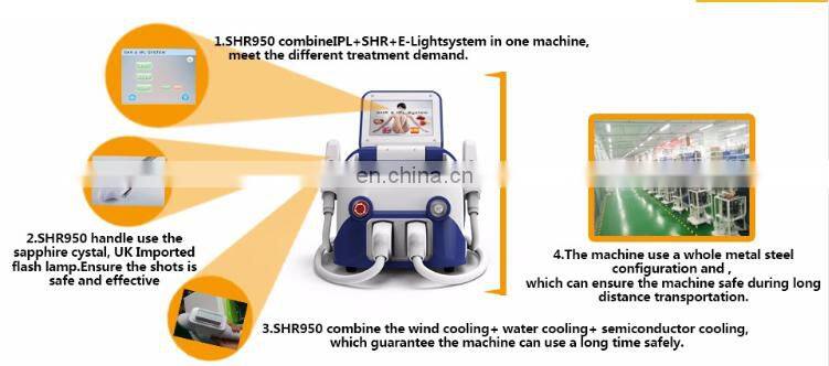 1. SHR950 combine IPL+SHR+E-Light system in one machine, meet the different treatment demand