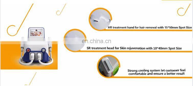 As you see, this machine have 2 treatment heads: One HR head for hair removal , one SR head the skin rejuvenation. And both of them have a very strong cooling. That can ensure when the customer do the treatment, they can feel comfortable also can feel good