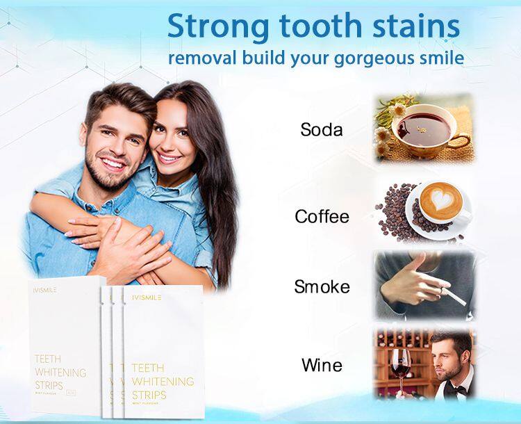 IVISMILE teeth whitening use 3% hydrogen peroxide effectively remove internal and external teeth stains caused by coffee, wine, smoke.