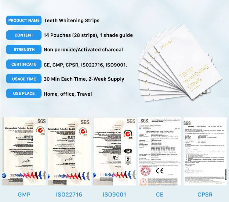 Get your bright smile with IVISMILE advanced teeth whitening strips through daily whitening, approved by thousands dentists, effective formula whiten teeth with less pain and get teeth 3-4 whiter after 14 days treatment.