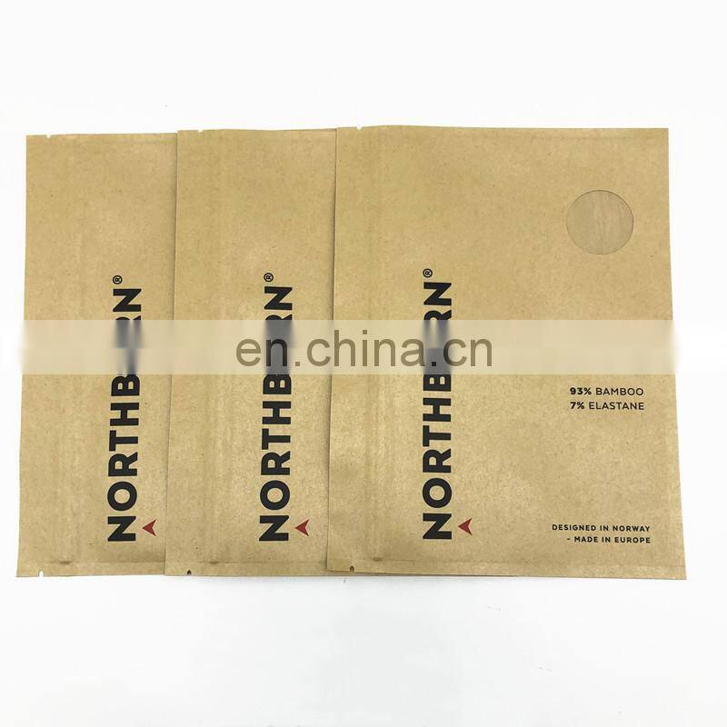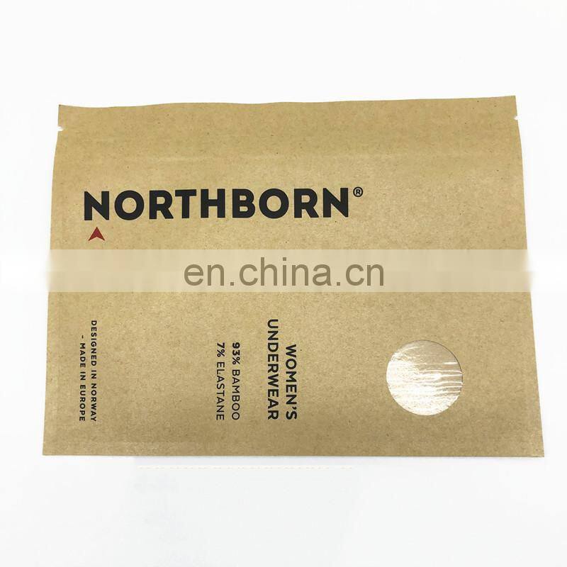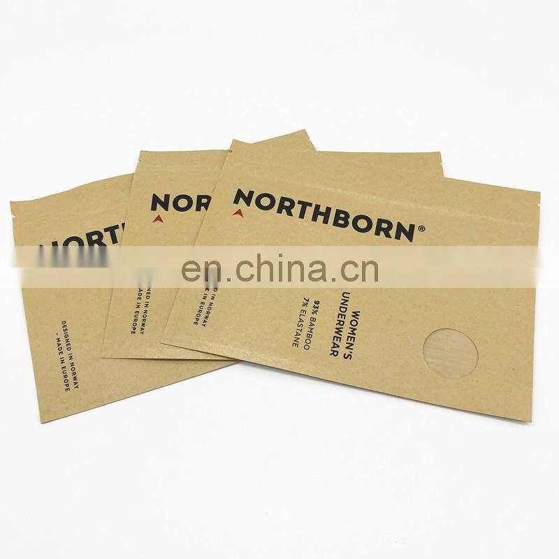 Matte Finish 3 Sided Coloured Seal Bag Recyclable Kraft Paper Bag for Women Underwear Packaging Flat Zip Lock Paper Bag |