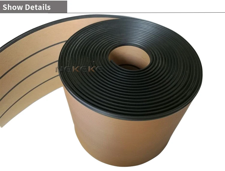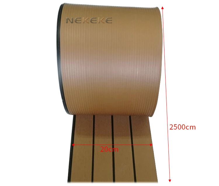 NEKEKE 25 Meter Roll 200mm Wide With Black Caulking Line Synthetic Teak Composite PVC Decking