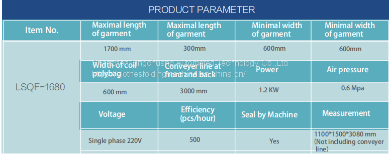 * Automatically transport the mounted garments to the packing machine and transpor out of